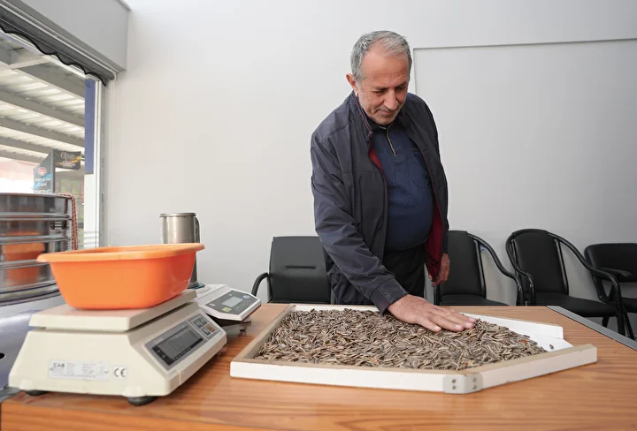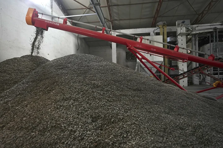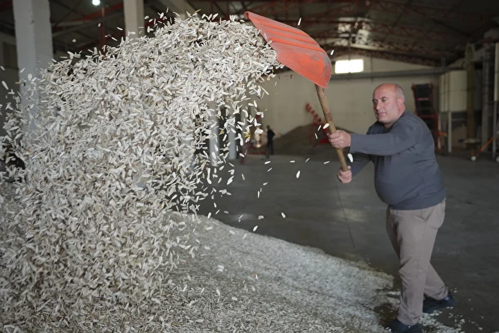 Yılmaz, bölgedeki yaklaşık 500 çiftçinin ve kendi ürettiği çekirdeği 2 bin 500 metrekare kapalı alanlı ve 5 bin ton ürün kapasiteli tesisinde eleyip çuvallayarak yurt içi ve dışına pazarlıyor.