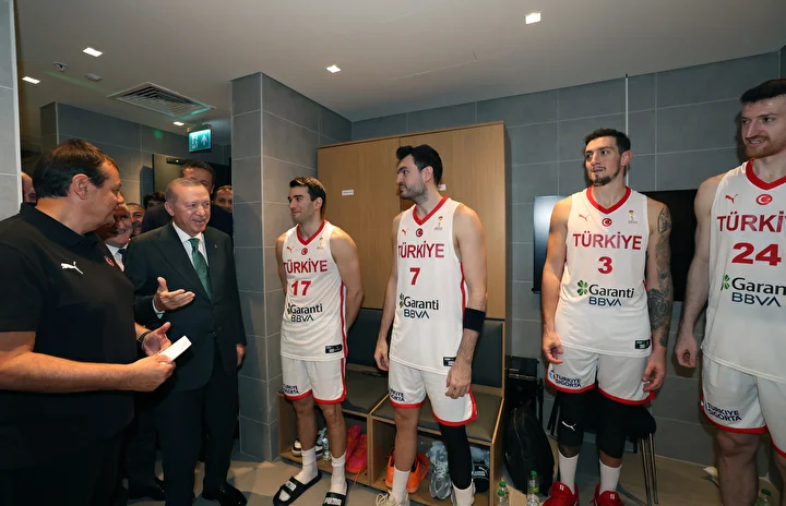 Cumhurbaşkanı Erdoğan, karşılaşma sonrası Milli oyuncuları soyunma odasında ziyaret etti.