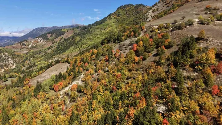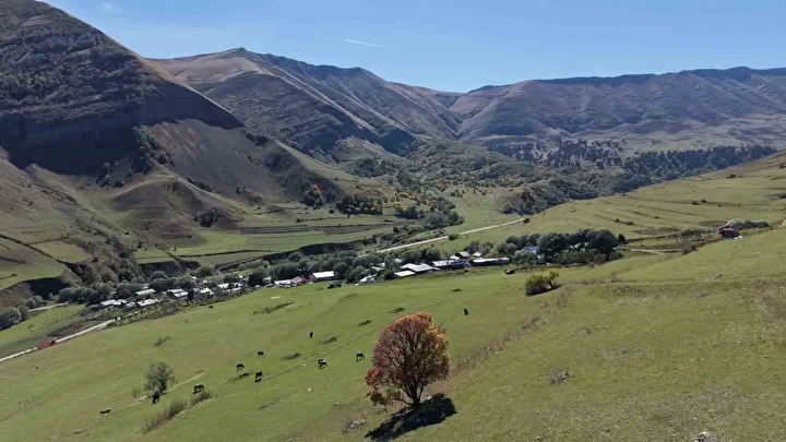 2 bin 400 ile 3 bin metre rakım arasında yer alan köyde, ağaç yapraklarının sararmasıyla birlikte eşsiz bir doğa manzarası oluştu.
