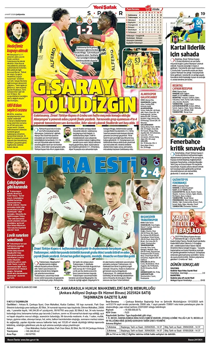 Alanyaspor’u yenerek adını çeyrek finale yazdırdı. Turnuvada grup aşamasını 4’te 4