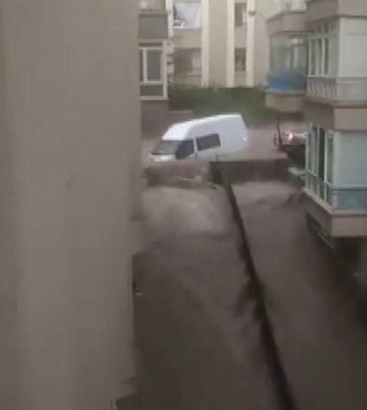Mahalle sakini, Murat Denemeci, saat 19.00 ile 20.00 sıralarında yağan şiddetli yağışın mahalleyi bu hale getirdiğini söyleyerek, “Yukardaki ana caddelerden gelen su buralara doldu.