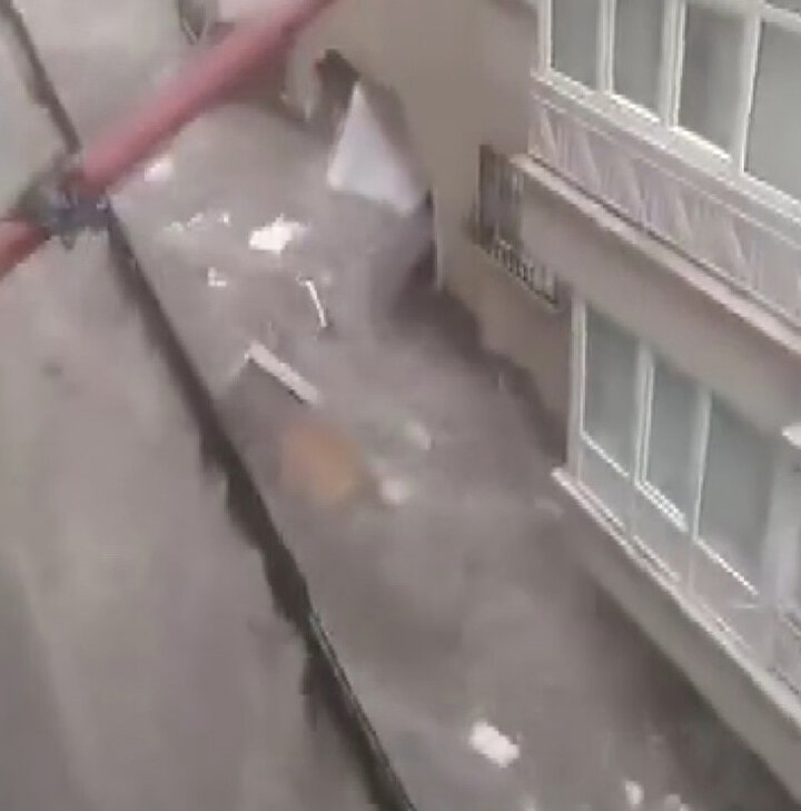 Hala korkuyorum, bina o kadar suyun altında kaldı ki artık yıkılacak diye korkuyoruz. 6 tane araç birbirine girdi, elektrik direği yıkıldı.