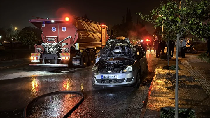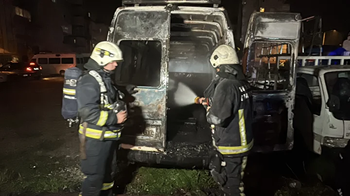 İtfaiyenin müdahalesiyle yanan otomobil ve panelvan araç söndürüldü, araçlar kullanılamaz hale geldi.