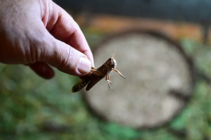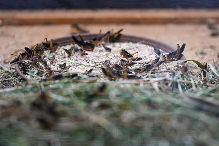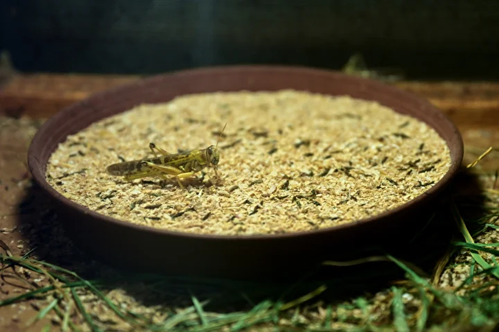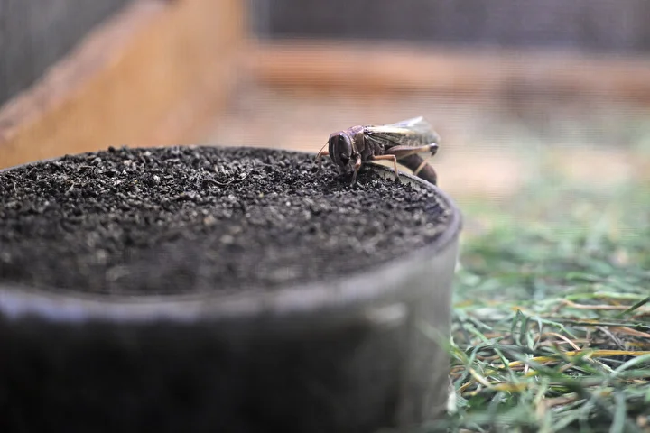 Çekirgeler için 450 kafesin bulunduğunu belirten Gökgöl, “Çekirge her türlü canlı için temel gıdadır. Protein oranı çok yüksektir. Her türlü canlı bunu tüketebilir. Bu çekirgeler doğada bildiğimiz çekirgeler gibi çok zıplayan, sağa sola kaçan, yakalaması zor olan canlılar değildir.” dedi.