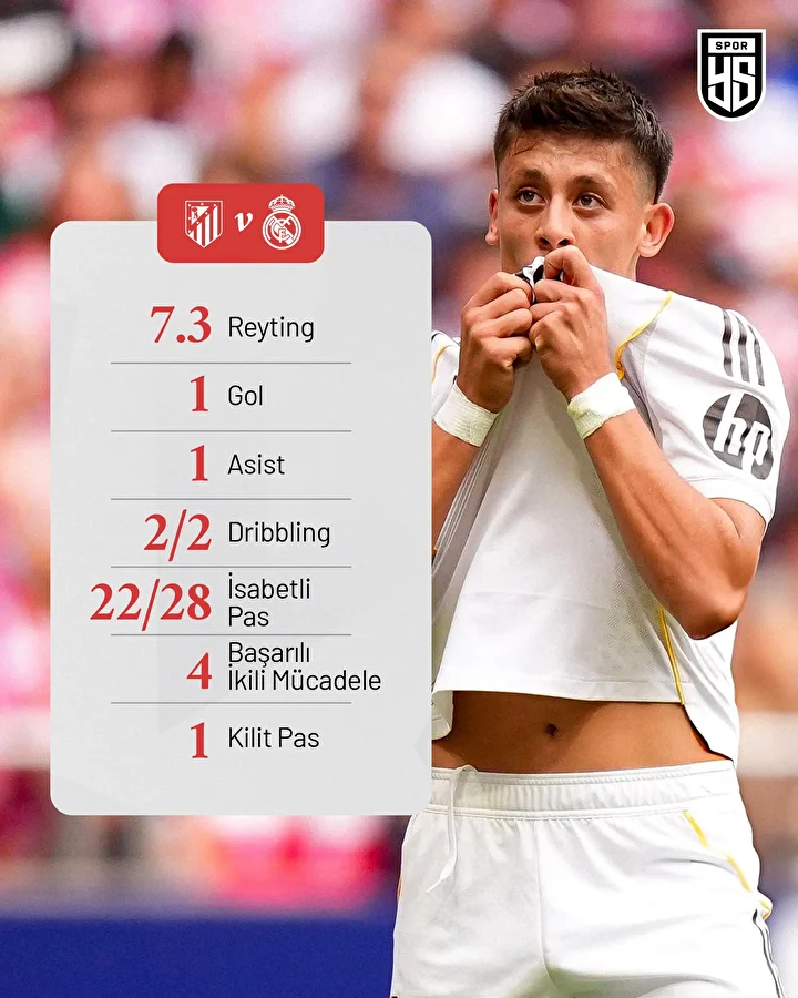 Milli futbolcumuz Arda Güler, Madrid derbisinde takımı kaybetmiş olsa da önemli istatistikler ortaya koydu.