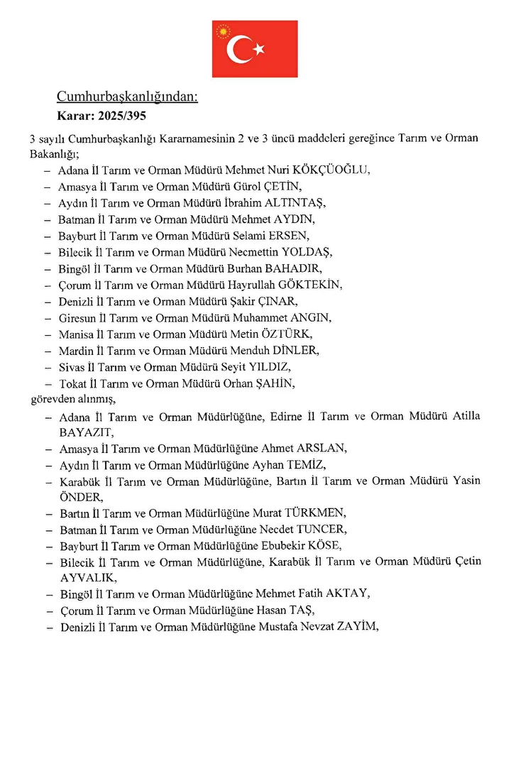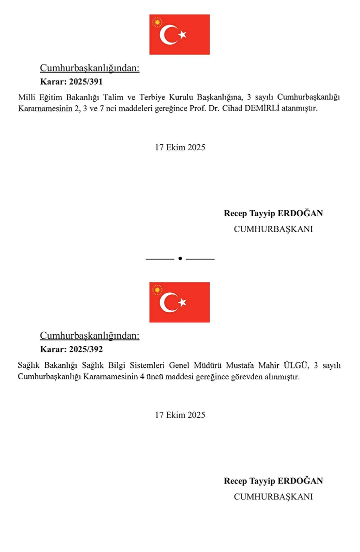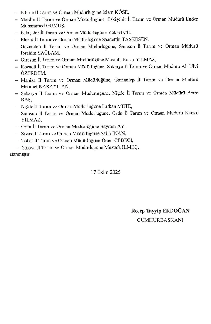 Cumhurbaşkanı Erdoğan’ın imzasını taşıyan atama kararları şöyle: