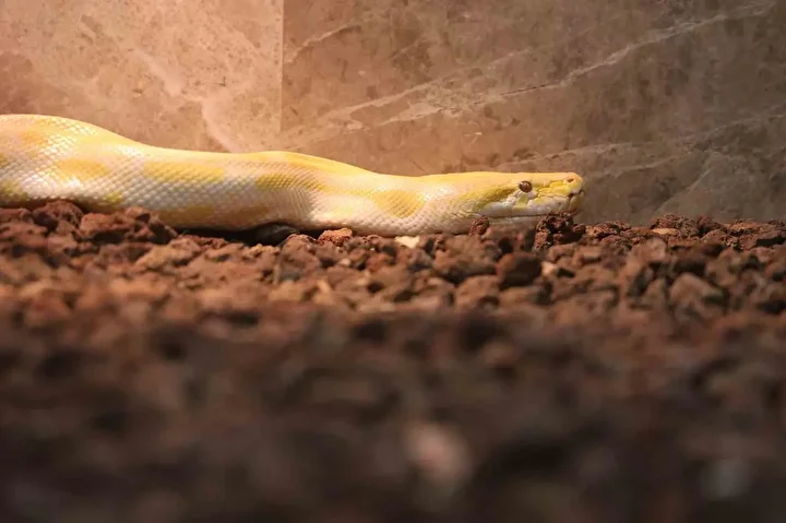 CITES’e tabi olan Albino Burma pitonu, Konya’daki Karatay Belediyesi Hayvanat Bahçesi’nde koruma altına alındı.