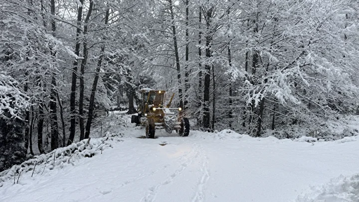Karayolları ekipleri ise ilçeden yaylaya ulaşımı sağlayan yolda iş makineleri yardımıyla karla mücadele çalışması yapıyor.