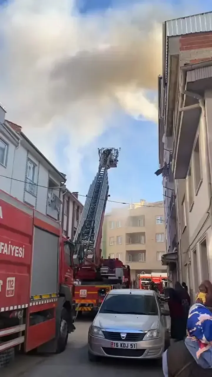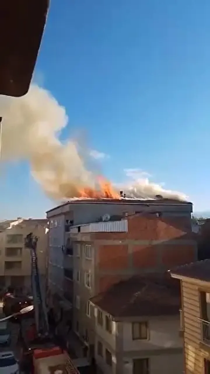 Bursa’da beş katlı apartmanın çatısında çıkan yangın söndürüldü