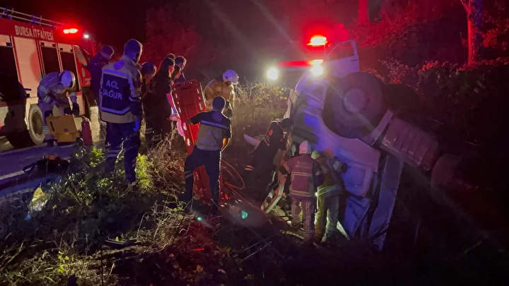 Kaza, saat 18.30 sıralarında İznik-Yenişehir çevre yolu üzerinde meydana geldi. İznik istikametine seyir halinde olan Kadir Menteş yönetimindeki 26 AGZ 905 plakalı çimento yüklü TIR, sürücüsünün direksiyon hâkimiyetini kaybetmesi sonucu bariyerleri aşarak şarampole devrildi.