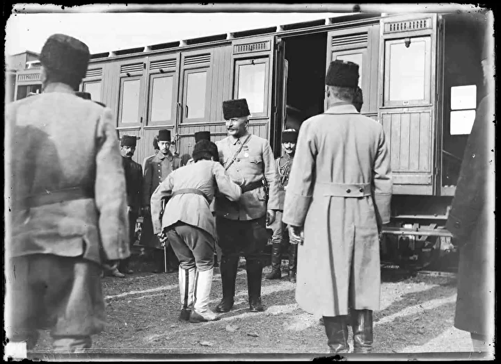 Enver Paşa’nın Beyrut’u ziyareti sırasında Fahreddin Paşa kendisini selamlarken