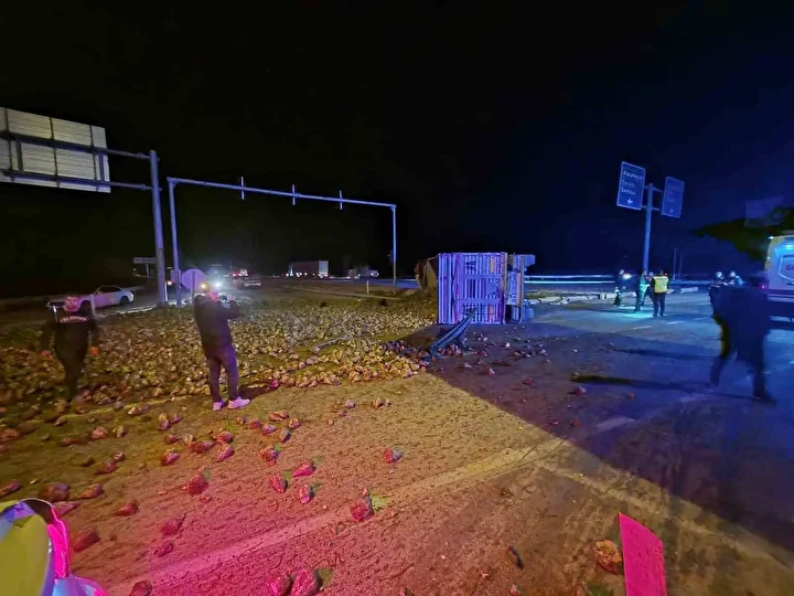 Çarpmanın etkisiyle savrulan tır devrildi. Tırın dorsesinde bulunan şeker pancarları ise yola savruldu. Kazada sürücüler ile otomobilde yolcu olarak bulunan Ahmet Y. yaralandı.
