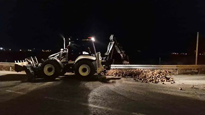 Yola saçılan şeker pancarları sebebiyle Yozgat istikameti yaklaşık 2 saat ulaşıma kapandı. Alaca Belediyesi ekipleri tarafından yapılan temizlik çalışmasının ardından yol trafiğe açıldı.