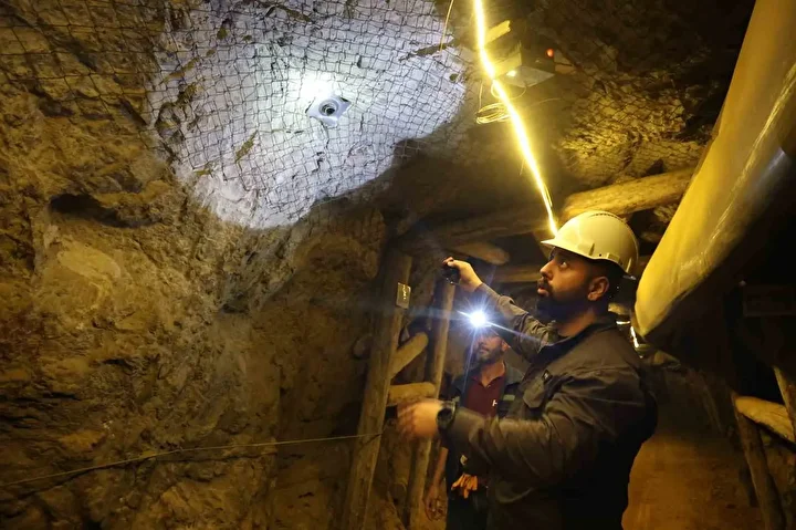 Yerin 700 metre altındaki bu zorlu mesai yerinde görüntülenirken maden işçilerinin aldığı tedbirler ve zorlu mesaileri de kameralara yansıdı. Depremler nedeniyle güvenlik seviyesini en üst düzeyde tutan madenciler, çatlak ve gevşemeleri titizlikle kontrol ederek galerileri adeta ilmek ilmek işliyor. Maden mühendislerinin incelemesine göre cevher üretilen bölgedeki fay dokularının yaşı 550 milyon yıl olarak tespit edildi.