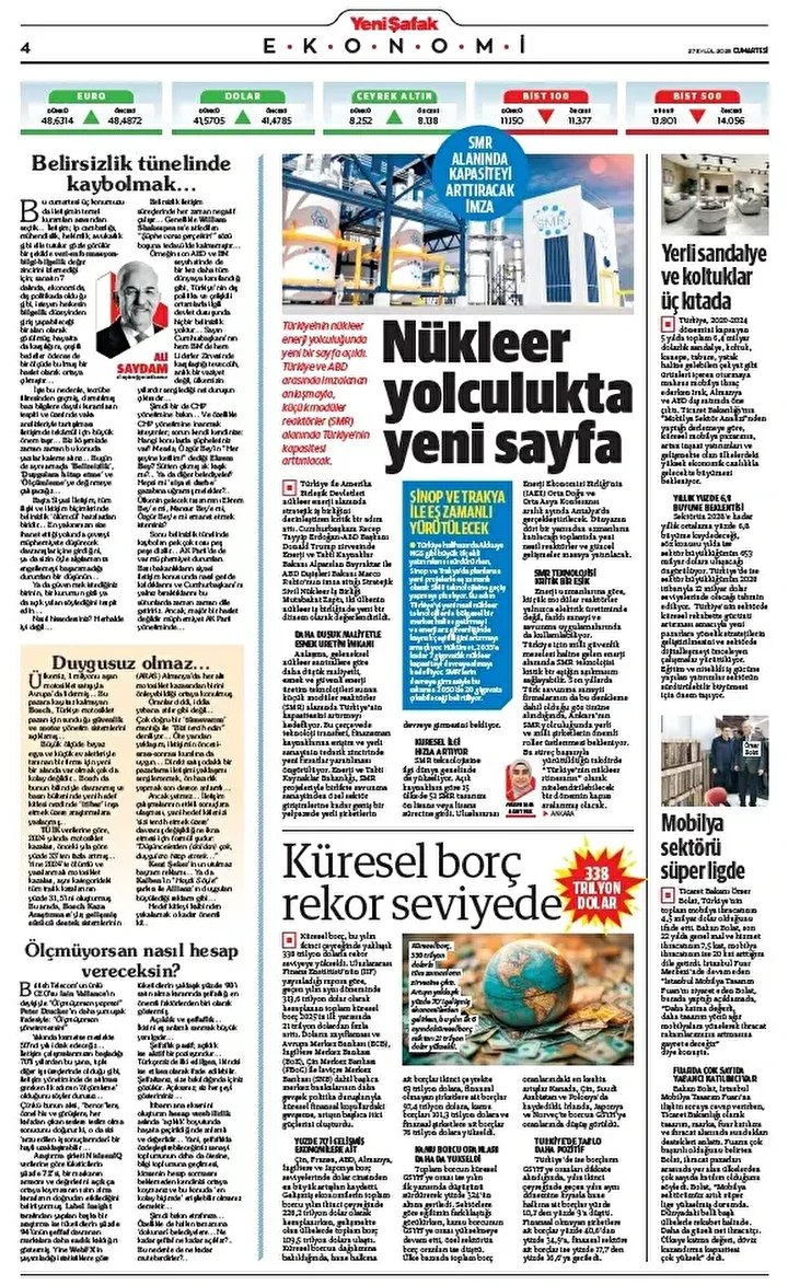 Yeni Şafak Gazetesi’nin 27 Eylül 2025 tarihli birinci sayfasında yer alan manşet ve haberler… Nükleer yolculukta yeni sayfa Türkiye’nin nükleer enerji yolculuğunda yeni bir sayfa açıldı. Türkiye ve ABD arasında imzalanan anlaşmayla, küçük modüler …