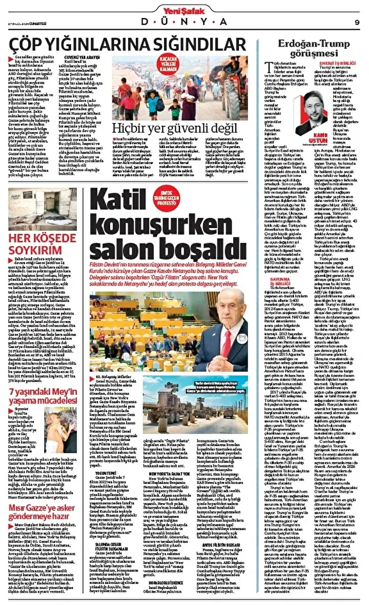 Filistin Devleti’nin tanınması rüzgarına sahne olan Birleşmiş Milletler Genel Kurulu’nda kürsüye çıkan Gazze Kasabı Netanyahu boş salona konuştu. Delegeler salonu boşaltırken ‘Özgür Filistin” sloganı attı. New York sokaklarında da Netanyahu’yu hedef alan protesto dalgası gerçekleşti.