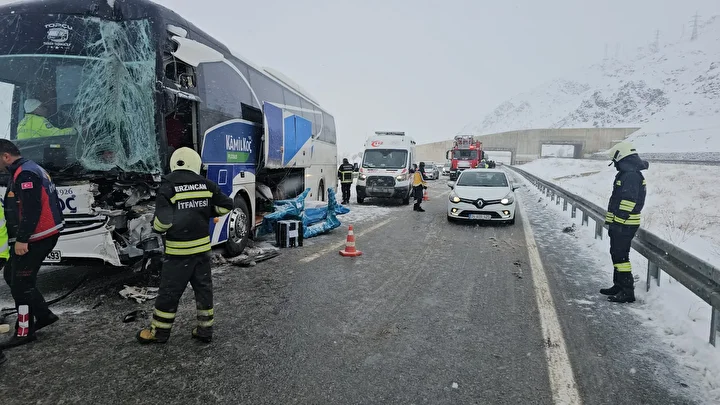 Erzincan’da otobüsün tıra çarptığı kazada 3 kişi yaralandı