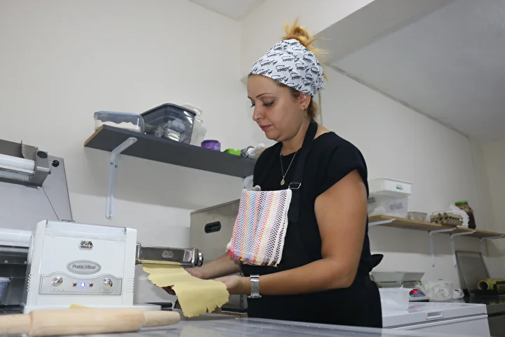 Merkez Seyhan ilçesinde yaşayan 1 çocuk annesi Sözüdüz, küçüklüğünden bu yana en sevdiği yemek olan makarnanın yapımına merak sardı.