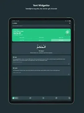 • Widget Desteği: Sade tasarımla ana ekranda namaz vakti bilgisi.