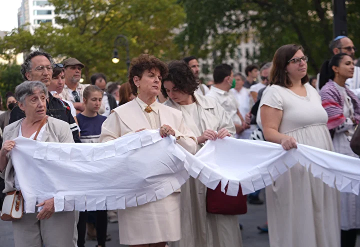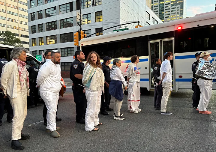 ABD’nin New York kentinde, Brooklyn Belediye Binası’nda gerçekleştirilen Yom Kippur 2025 buluşmasının ardından, “Ateşkes İçin Hahamlar” inisiyatifi tarafından İsrail saldırılarının sona erdirilmesi ve Gazze’de ateşkes sağlanması çağrısıyla gösteri düzenlendi.
