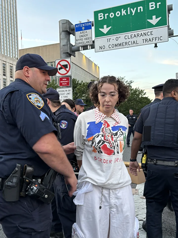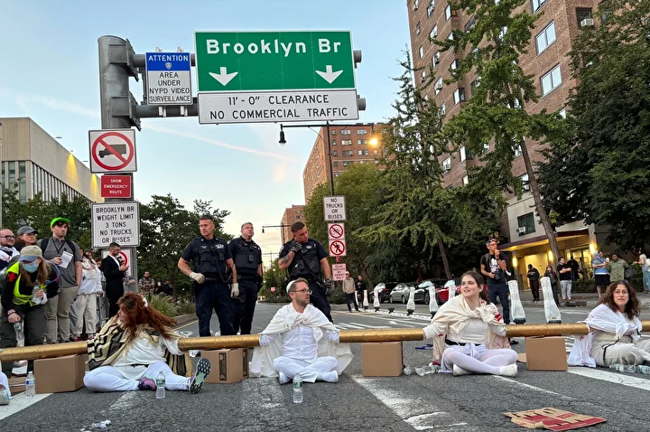 Bazı göstericiler, Brooklyn Köprüsü’ne giden yolu kapattı.