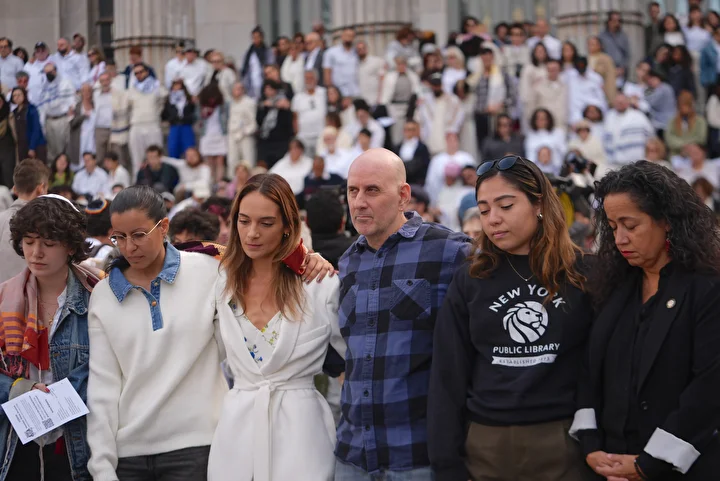 ABD’nin New York kentinde, Brooklyn Belediye Binası’nda gerçekleştirilen Yom Kippur 2025 buluşmasının ardından, “Ateşkes İçin Hahamlar” inisiyatifi tarafından İsrail saldırılarının sona erdirilmesi ve Gazze’de ateşkes sağlanması çağrısıyla gösteri …