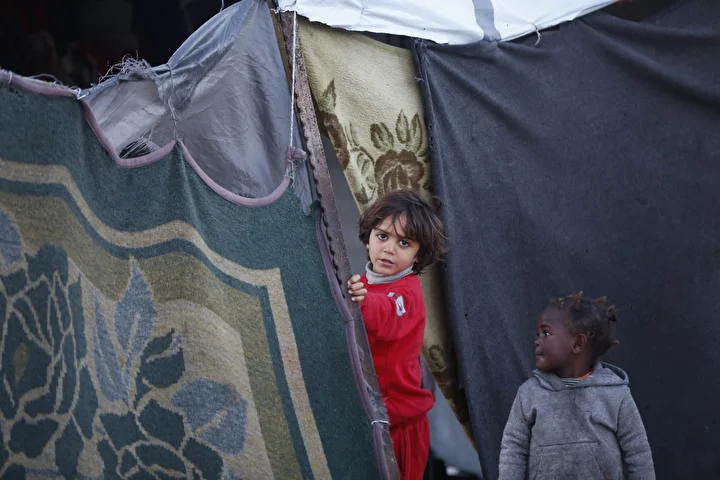 Gazze Şeridi’nin orta kesiminde yer alan Deyr el-Belah kentinin güneyindeki bir kampta yaşayan yerinden edilmiş Filistinliler, günlük yaşamlarını derme çatma çadırlarda zor koşullar altında sürdürmeye çalışıyor. E