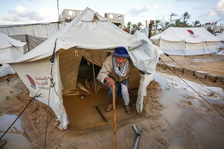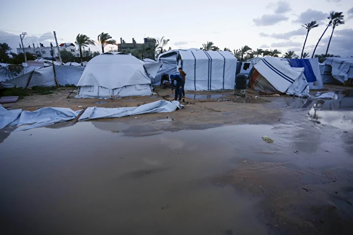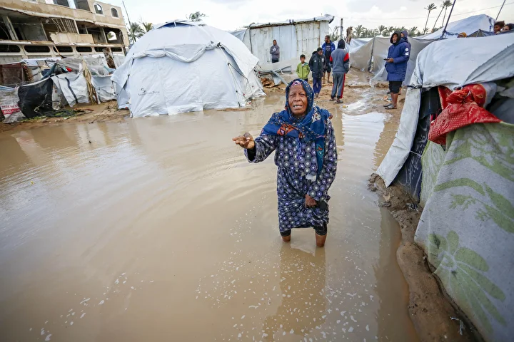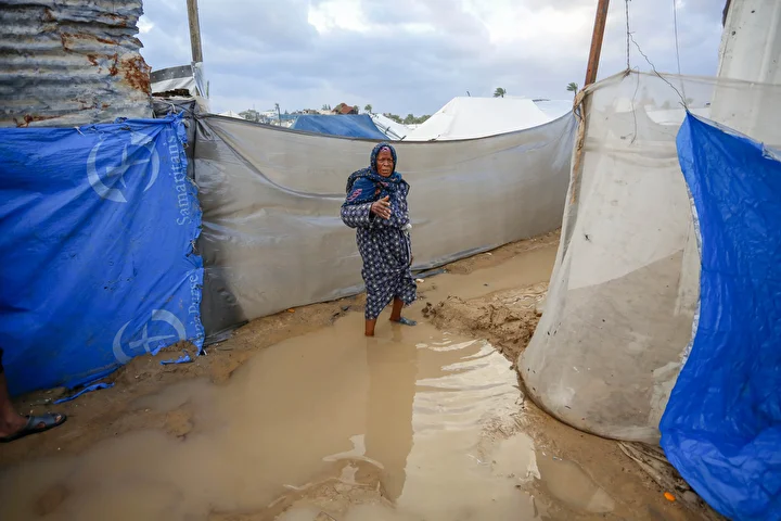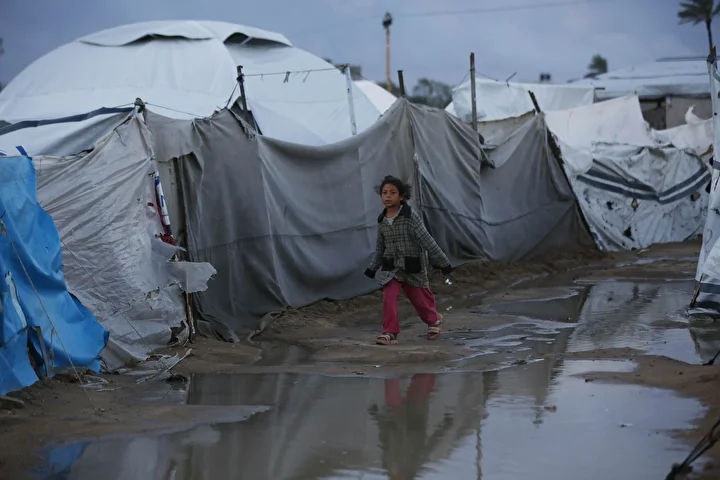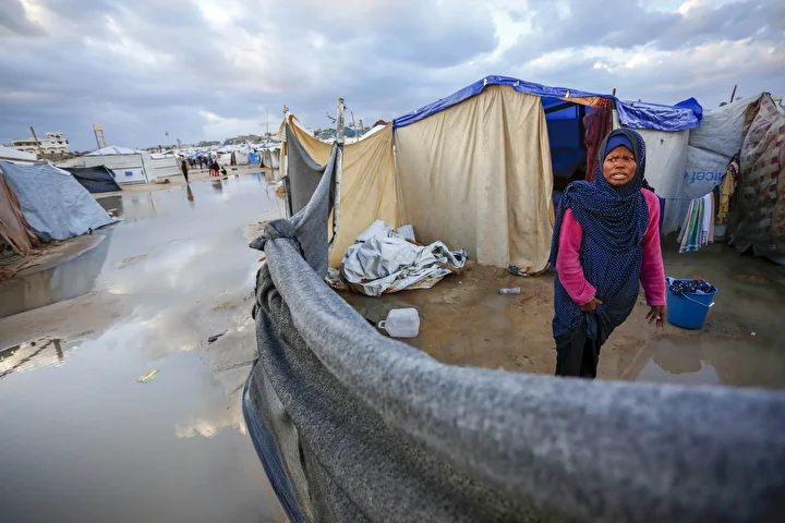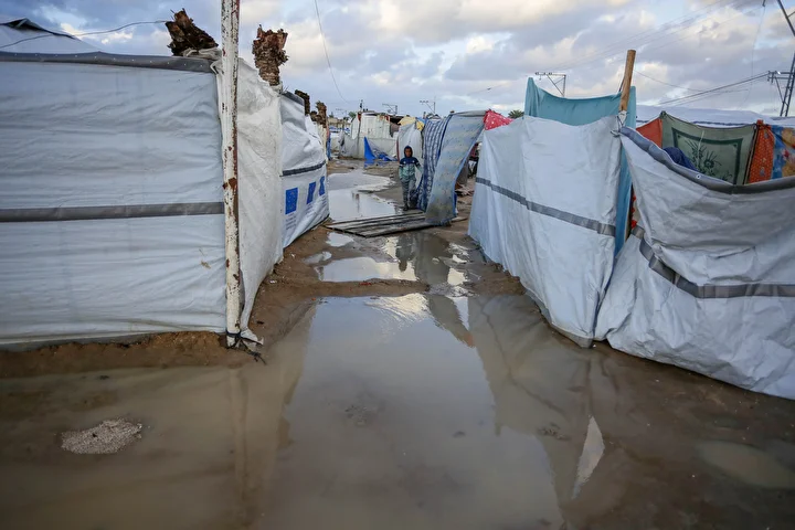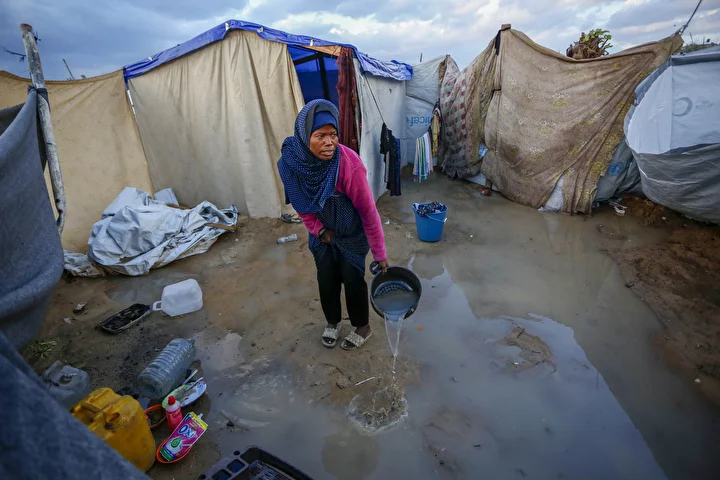 Olumsuz hava koşulları, çadırlarda yaşayan Filistinli ailelerin karşı karşıya olduğu insani sıkıntıları daha da ağırlaştırdı.