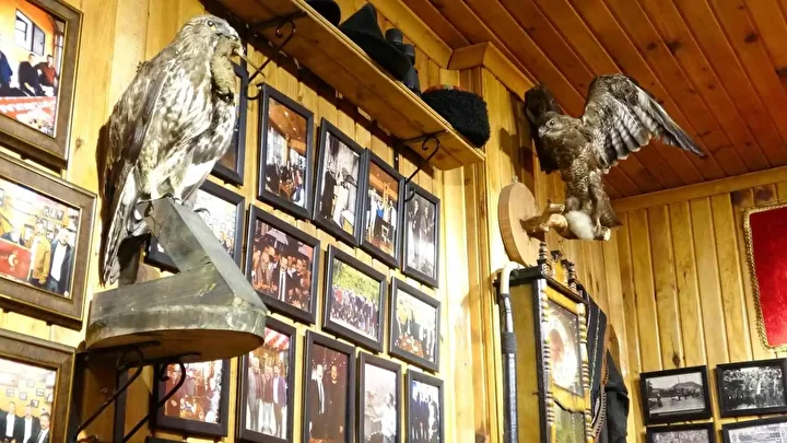 Kafede sergilenen tarihe tanıklık etmiş eski fotoğraflar, tahnit sanatıyla korunmuş avcı kuşlar, Giresun’a özgü aba zıpka kıyafetler ve Milli Mücadele döneminden kalma kama bıçakları, müşterilere farklı bir atmosfer sunuyor.