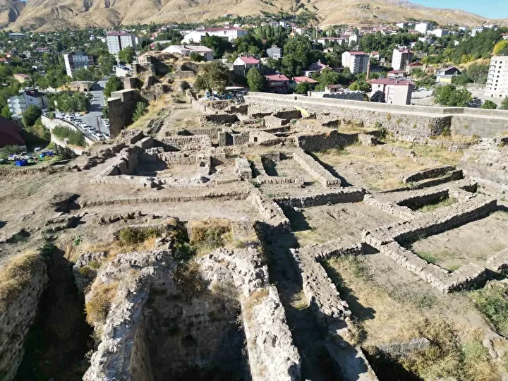 “Saray kabul mekanı tonozlu bir üst örtüye sahip. Fakat tonozlu üst örtüsü günümüze kalmamış. Günümüze kalan yapı unsurları yaklaşık 2 metre yüksekliğinde ve 80 santimetre kalınlığındaki duvar kalıntısı. Duvarlar Bitlis’in yerli kesme taşından dolgu tekniğiyle yapılmış. Farklı olarak da 2004’ten beri yapılan kazılarda ilk defa karşımıza çıkan tuğla zemin döşemesine rastladık. Bu da önemli bulgularımız arasında.”