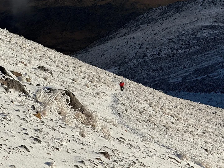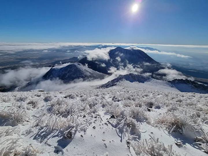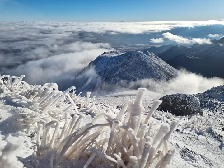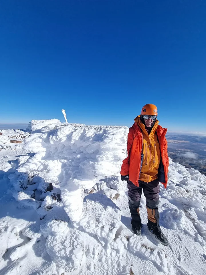 Dağcı Ahmet Acun ile fotoğraf sanatçısı Ömer Yiğit, 5,5 saatlik tırmanışın ardından zirvedeki beyaz güzelliği görüntüledi.