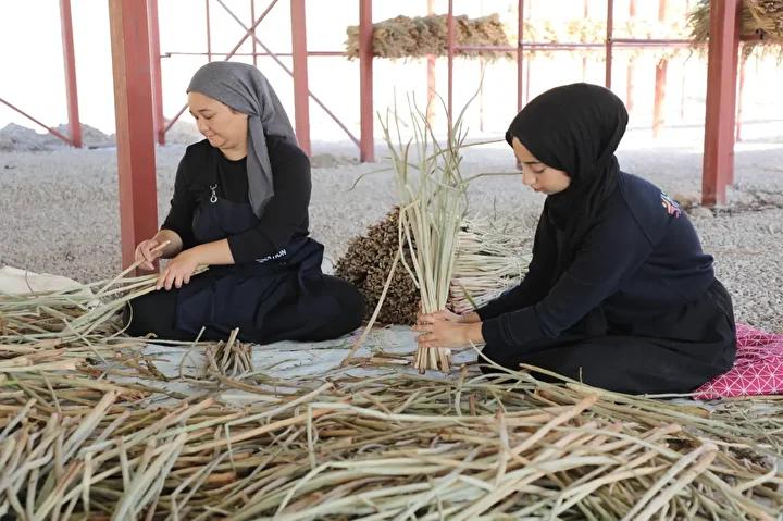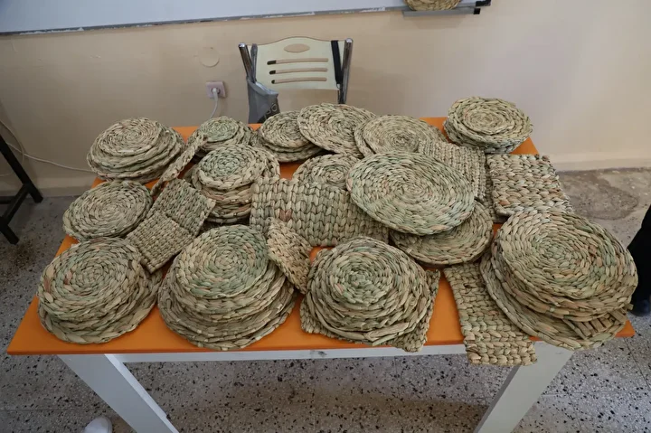 Hatay Kariyer ve İstihdam Merkezi kurslarında eğitim alan kadınlar tarafından kurutulan sümbüller, sepet, çanta, saksı, tepsi gibi dekoratif ürünlere dönüştürülüyor.