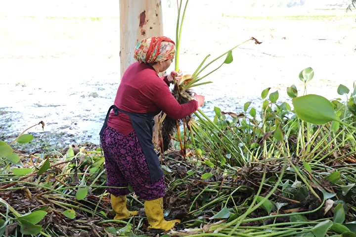 Proje kapsamında, istilacı türlerden olan su sümbülleri belediye ekiplerince toplandı.