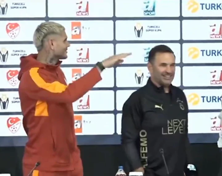 Basın toplantısında kupanın sergilendiği sırada Icardi, kupaya yaklaşıp eliyle boyunu işaret ederek “Bu kadar mı?” dercesine bir hareket yaptı ve hemen yanındaki Okan Buruk’a dönüp güldü.