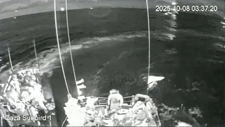 Filodaki gemilerin etrafının İsrail donanmasına ait hücumbotlarla sarıldığı görülen canlı yayında, gemilerdeki katılımcıların telefonlarını denize attıkları görüntüler de ekranlara yansıdı.