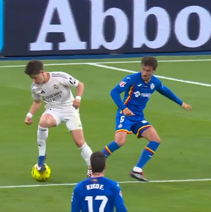 La Liga’nın 26. haftasında Santiago Bernabeu’da oynanan mücadelede Arda Güler, bir pozisyonda peş peşe rakiplerini geçerek topun üzerinde dönüp şutunu çıkardı.