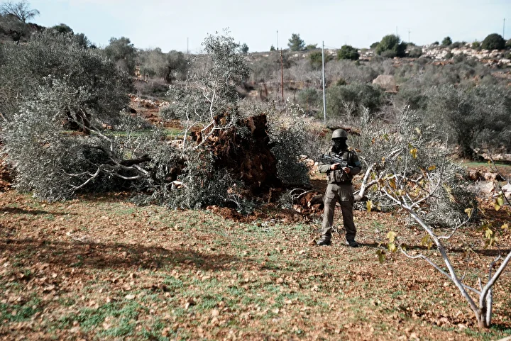 İsrail Nablus’un güneyinde yüzlerce zeytin ağacını kökünden söktü