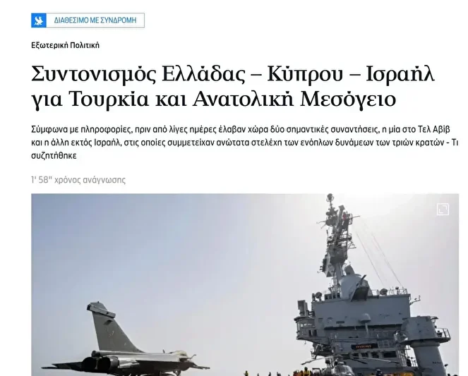 Yunanistan’da yayın yapan Kathimerini gazetesinde yer alan habere göre; İsrail, Türkiye’nin bölgede yükselen gücünden duyduğu kaygı nedeniyle Yunanistan ve Güney Kıbrıs Rum Yönetimi (GKRY) ile temaslarını yoğunlaştırdı.