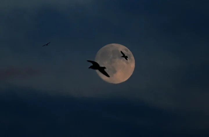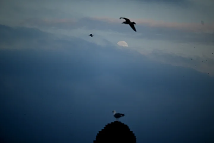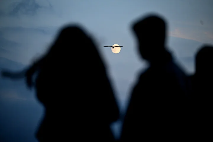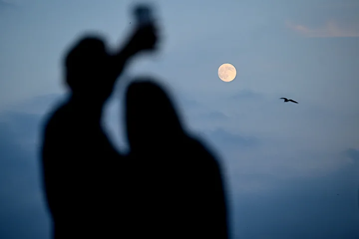 İstanbul’da akşam saatlerinde beliren dolunay, güzel görüntü oluşturdu.