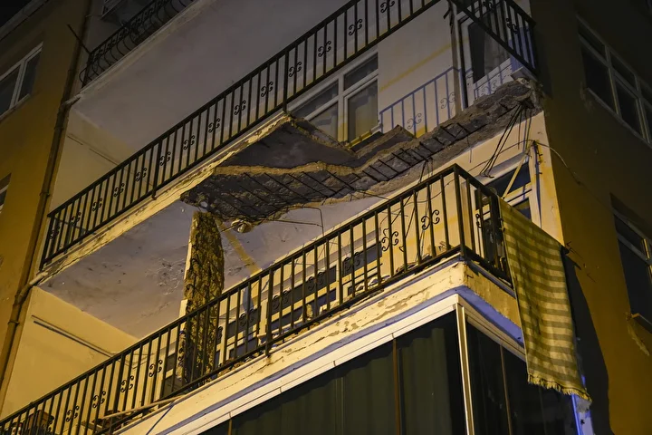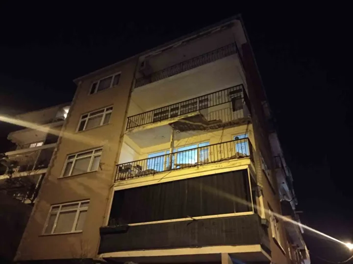 Apartmandan seslerin geldiğini fark eden ve balkon zemininin çöktüğünü gören bina sakinleri dışarı çıktı.