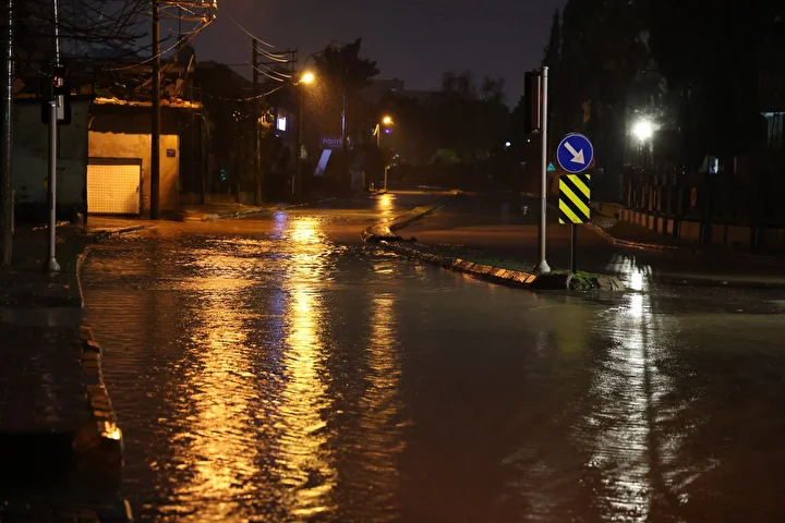 Meteoroloji Genel Müdürlüğü İzmir Bölge Tahmin ve Erken Uyarı Merkezi tarafından, İzmir için kuvvetli gök gürültülü sağanak beklendiği uyarısının ardından gece saatlerinde kentte sağanak yağış etkili oldu.