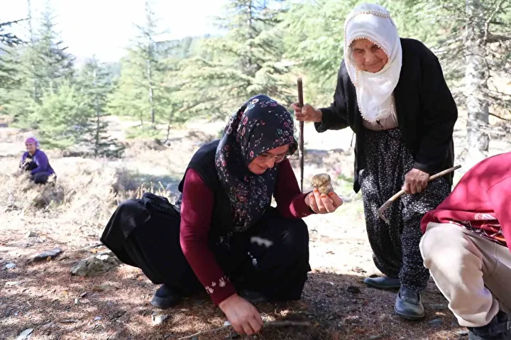 Sabah ezanıyla birlikte ormana gidip öğle namazına kadar mantar topladığını anlatan 85 yaşındaki Sanem Gündoğdu, “Dağdan topluyorum, satıyorum, evime katkı oluyor” derken Raziye Gündoğdu da sedir ağaçlarının gölgesinde mantar arayarak elde ettiği gelirle ev ekonomisine destek verdiğini ifade etti.