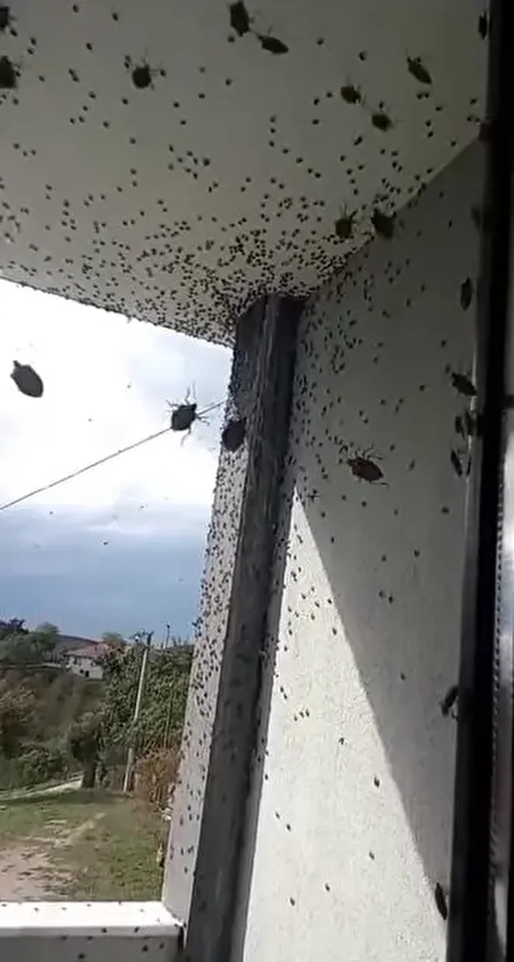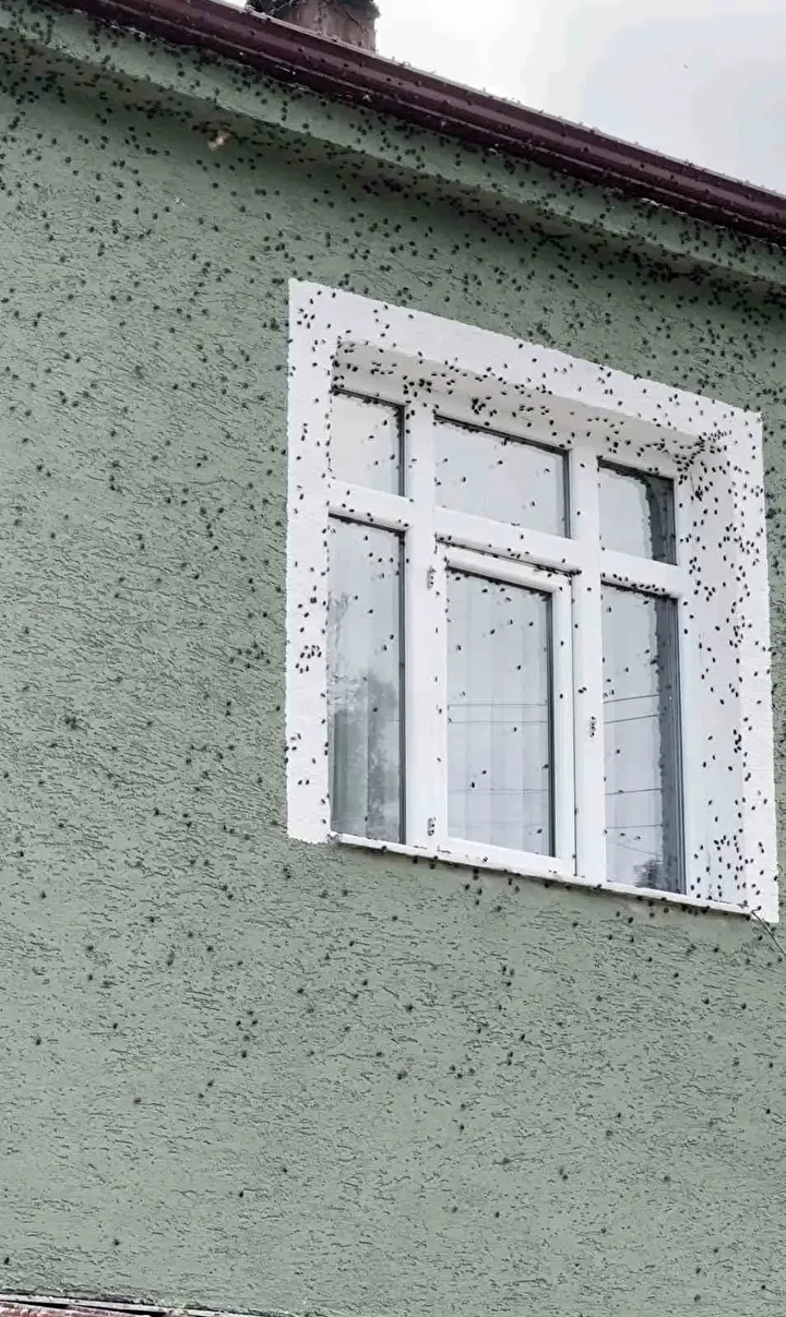 Evlerin, okulların ve duvarların üzerinde yoğun şekilde görülen böcekler vatandaşları tedirgin etti.