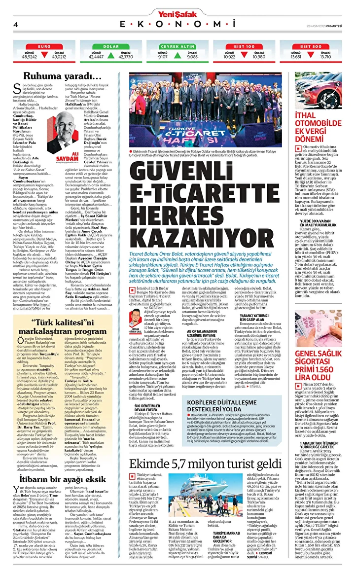 Yeni Şafak Gazetesi’nin 22 Kasım 2025 tarihli birinci sayfasında yer alan manşet ve haberler… Güvenli e-ticarette herkes kazanıyor Ticaret Bakanı Ömer Bolat, vatandaşların güvenli alışveriş yapabilmesi için kasım ayı indirimleri başta olmak üzere …