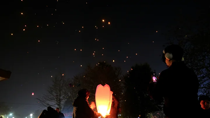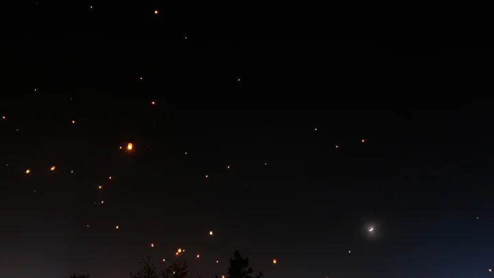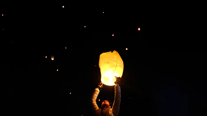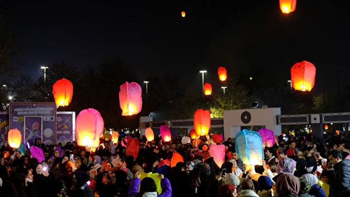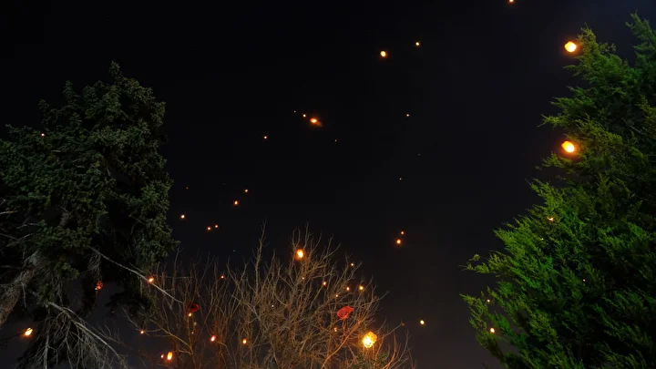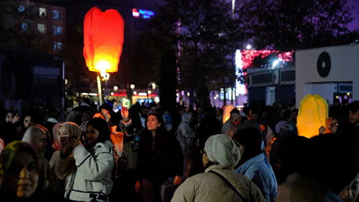 Gökyüzüne bırakılan dilek fenerleri renkli görüntüler oluşturdu.