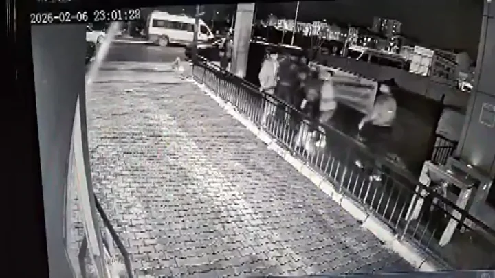 Öte yandan, polis memurunun kalabalık bir grup tarafından darbedildiği, eşinin ise tokat atılarak yere düşürüldüğü anlar çevredeki bir iş yerinin güvenlik kamerasına yansıdı.