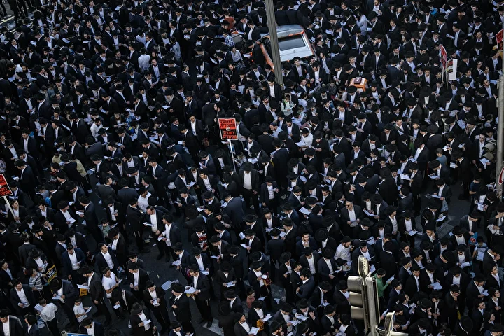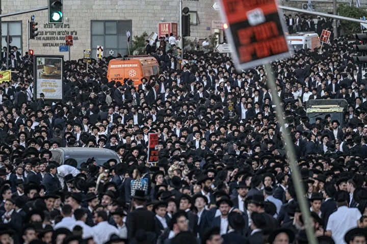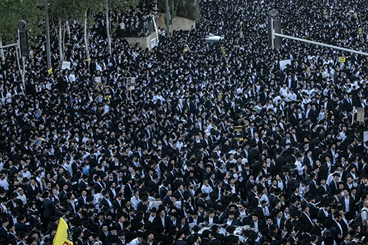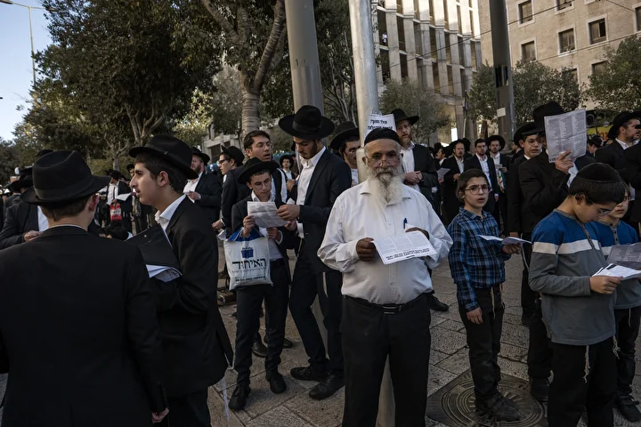 On binlerce Haredinin katıldığı gösterinin, İsrail’de son yıllarda yapılan en büyük protesto olduğu belirtiliyor.