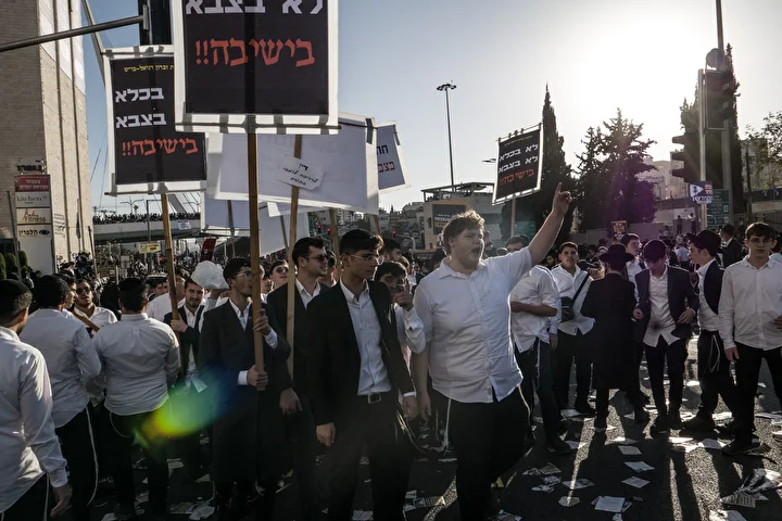 İsrail’de Haredi kesimi askerlikten muaf tutacak bir yasa talep eden ve zorunlu askerliğe karşı çıkan on binlerce kişi, İsrail’in birçok bölgesinden, Batı Kudüs’teki Yitzhak Navon tren istasyonunda toplanmaya başladı.