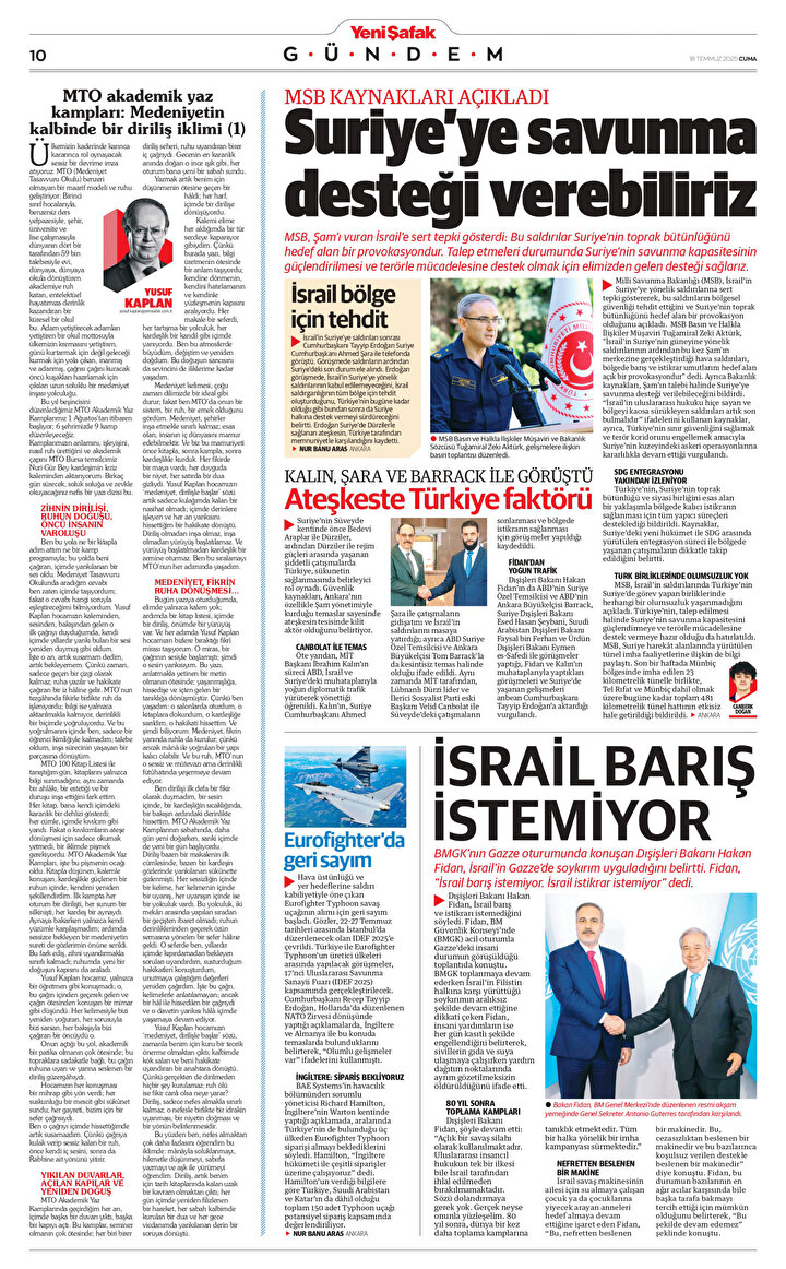 Türkiye, İsrail’in Dürzileri bahane edip Suriye’de birçok kenti bombalamasını yakından takip ediyor. MİT ve Dışişleri, Süveyde’de Şam ile Dürzi gruplar arasındaki “ateşkeste” rol oynarken Milli Savunma Bakanlığı’ndan önemli çıkış geldi. Bakanlık kaynakları, “Türkiye, talep edilmesi halinde Suriye’nin savunma kapasitesini güçlendirmeye ve terörle mücadelesine destek vermeye hazırdır” dedi.