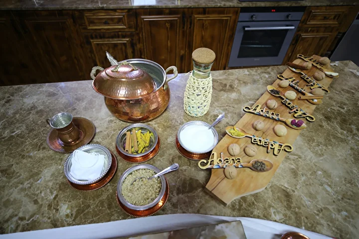 Seyhan ilçesi Tepebağ Mahallesi’ndeki 145 yıllık tarihi binada hizmet veren merkezde görevli usta öğreticiler, şerbeti geleneksel tarife sadık kalarak hazırlıyor.